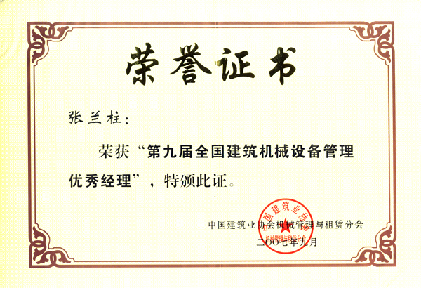 张兰柱同志以他杰出的工作业绩被各级领导机关授予:全国、河北省、保定市建筑业优秀企业经理;优秀企业家;优秀共产党员;优秀党务工作者;优秀思想政治工作者;安全生产、工程质量管理先进个人;河北省优秀经理管理者;河北省建设系统劳动模范;河北省劳动模范等荣誉称号